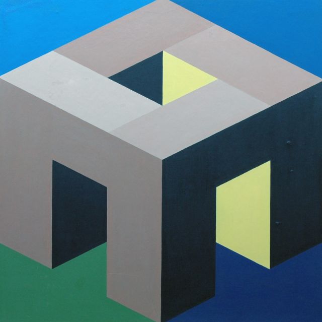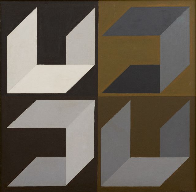 Theo Stiphout | Motief II, olieverf op schildersboard, 59,6 x 59,5 cm, gesigneerd verso en verso gedateerd '75