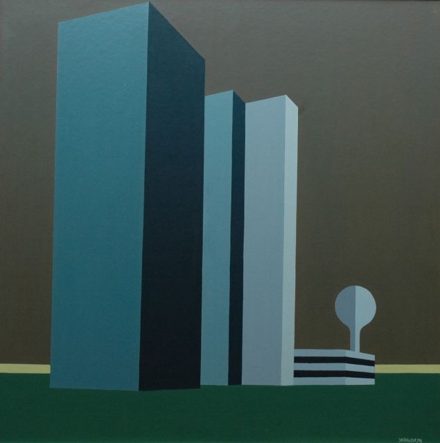 Theo Stiphout | Impressie I, olieverf op schildersboard, 59,4 x 59,7 cm, gesigneerd r.o. en gedateerd '74