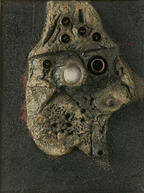 Wim de Haan | Zonder titel, olieverf en as op jute, 90,0 x 100,0 cm, gesigneerd l.v.h.m. en gedateerd '55