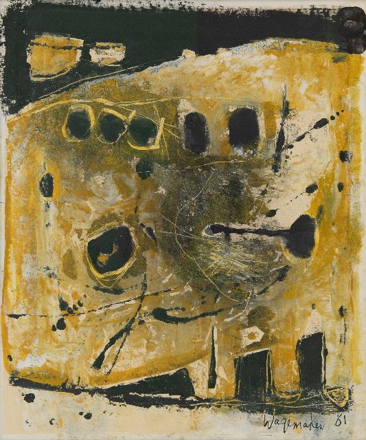 Jaap Wagemaker | Abstract in geel en zwart, gemengde techniek op papier, 54,0 x 44,5 cm, gesigneerd r.o. en gedateerd '61