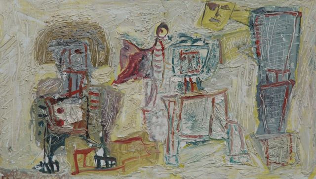 Lucebert | Drama thuis (Krach zu Hause), olieverf op doek, 100,0 x 150,3 cm, gesigneerd r.o. en gedateerd '61