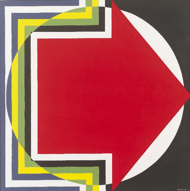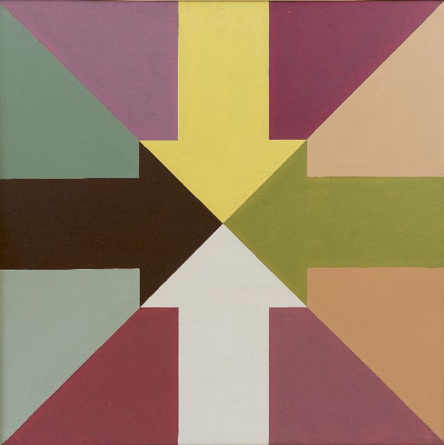 Theo Stiphout | 4 pijlen, olieverf op board, 60,3 x 60,3 cm, gesigneerd verso en verso gedateerd '76