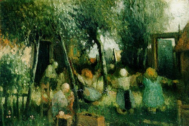 Boerenlandschap met spelende kinderen