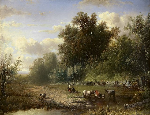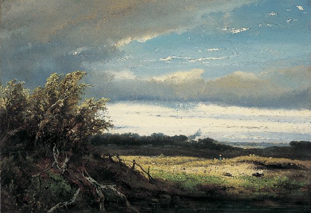 Het zijn vooral Haagse schilders die, in navolging van de schilders van Barbizon, vanaf halverwege de jaren 50 naar het Gelderse Oosterbeek trekken. In dit dorpje aan de Zuidrand van de Veluwe, later ‘het Hollandse Barbizon’ genoemd, wordt het atelier verruild voor tekenen en schilderen ‘en plein air’. Buiten worden stemming en atmosfeer zo direct mogelijk vastgelegd en men bekommert zich minder om details of een gecomponeerde compositie. Kunstgrepen en theorieën worden losgelaten en men tracht te putten uit eigen waarneming. Net als in Barbizon is het een bont gezelschap dat in en rond Oosterbeek vertoeft. J.W. Bilders kwam in de zomer van 1841 voor het eerst in Oosterbeek, waar het afwisselende landschap met zijn uitzichten, oude eiken- en beukenbossen en heidevelden een grote aantrekkingskracht uitoefende op schilders. Enkele jaren later streek het gezin Bilders in het dorp neer. De gastvrije Bilders werd daar de spil van een groep jonge schilders die zijn voorbeeld volgden en in de omgeving van het pittoreske dorp in de vrije natuur kwamen werken. Daar ontstond de eerste Nederlandse schildersbent, de Oosterbeekse School. Verschillende van deze kunstenaars, onder wie Willem Roelofs, Paul Gabriel, Anton Mauve en de gebroeders Jacob, Matthijs en Willem Maris, maakten later deel uit van de Haagse School. Veel schilders kennen elkaar, er wordt getekend en geschilderd in het midden van het bos en de leden van de ‘bent’ zoeken elkaar op in kroegen en pleisterplaatsen om daar lange gesprekken te houden over hun werk. Ze leggen er de basis voor een nieuwe stijl in het voetspoor van Barbizon: de Haagse School. Het eind dat in Oosterbeek gemaakt wordt aan de romantische benadering van de natuur wordt door de Haagse schilders na de jaren 60 voortgezet. De landelijke omgeving wordt verkend en men trekt de Hollandse polders en veengebieden in om atmosfeer en licht, kleuren en wolken te schilderen.