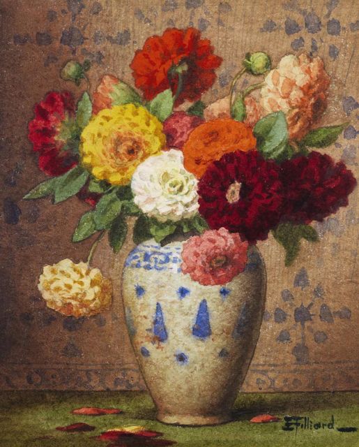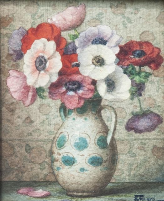 Ernest Filliard | Gentianen in een pot, aquarel op papier, 27,5 x 35,5 cm, gesigneerd l.o.