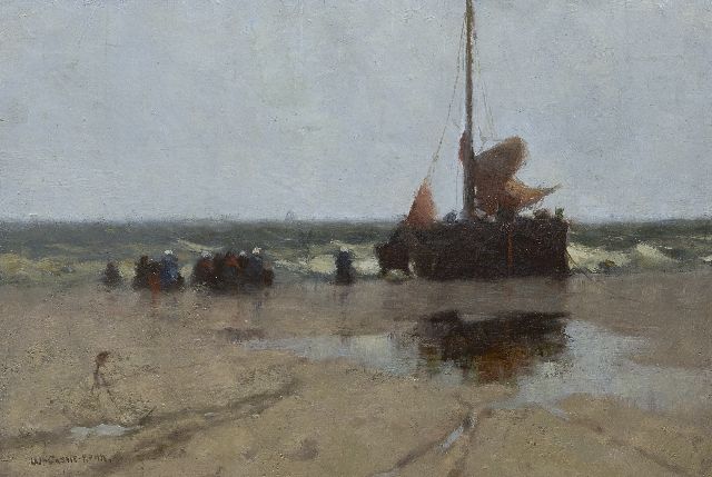 Charles Paul Gruppe | Vissersboten op het strand, olieverf op doek, 101,7 x 131,8 cm, gesigneerd r.o. en te dateren ca. 1910
