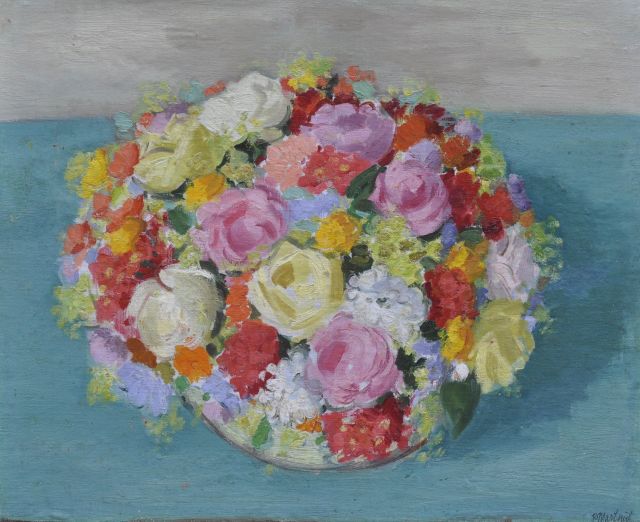 Raoul Martinez | Bloemenmand, olieverf op doek op board, 48,9 x 60,5 cm, gesigneerd r.o.