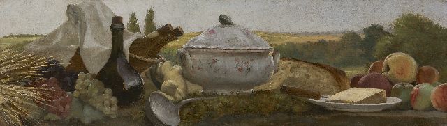 Georges Marie Julien Girardot | Maaltijd buiten, olieverf op paneel, 29,7 x 104,3 cm