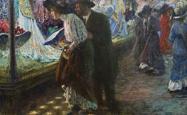 Sigismund Ivanowski | Etalages kijken, olieverf op doek, 50,9 x 81,6 cm