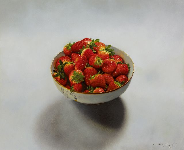 Walter Elst | Aardbeien in een kom, olieverf op paneel, 33,0 x 40,0 cm, gesigneerd r.o. en gedateerd 2008