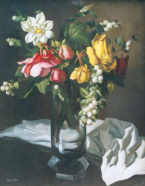 Adriaan van 't Hoff | Bloemstilleven, olieverf op doek, 50,0 x 40,2 cm, gesigneerd l.o.