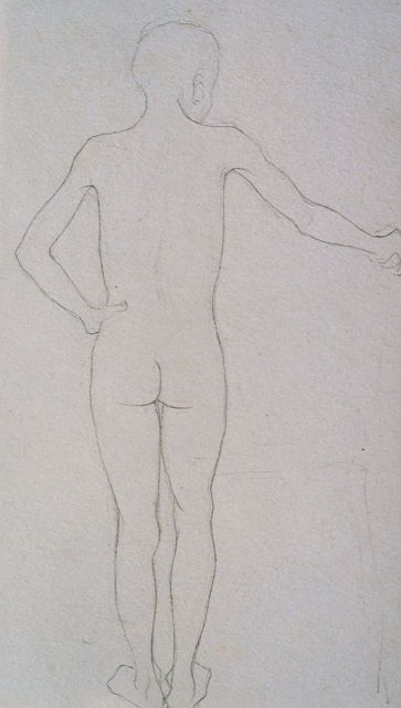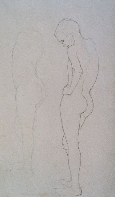 Jan Mankes | Studie van een mannelijk naakt, potlood op papier, 26,4 x 17,0 cm, te dateren 1913