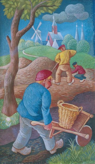 Louis Schrikkel | Boerenarbeid, gouache op papier, 24,0 x 14,0 cm, gesigneerd l.o.