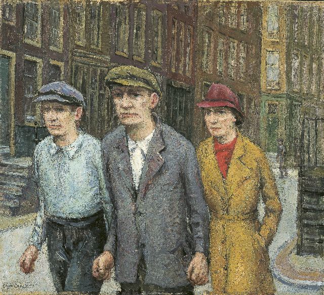 Chris Beekman | Op weg naar de demonstratie, olieverf op doek, 45,0 x 50,0 cm, gesigneerd l.o. en te dateren ca. 1934