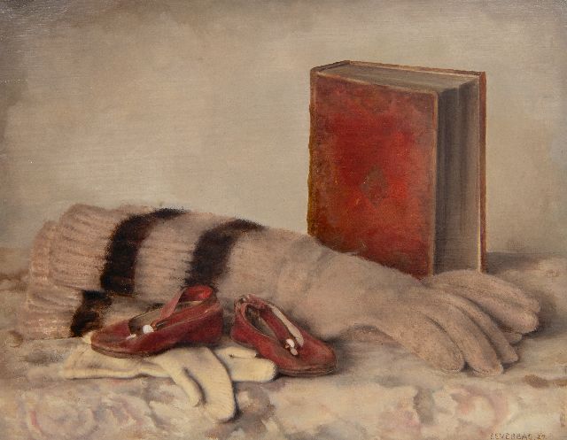 Jan Bogaerts | Stilleven met bijbel en vaas met strobloemen, olieverf op doek, 35,5 x 40,5 cm, gesigneerd r.b. en gedateerd 1942