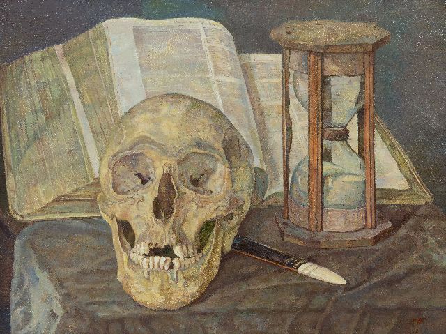 Corrie Pabst | Vanitas stilleven, olieverf op doek, 30,5 x 40,2 cm, gesigneerd r.o.