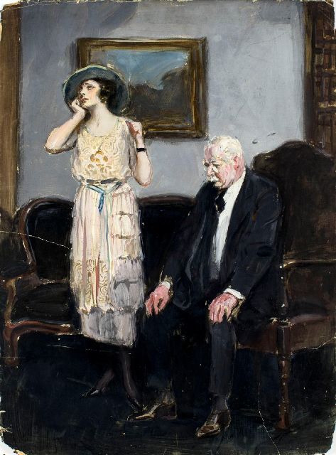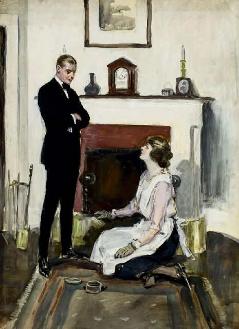 Clarence Underwood | Gentleman and housemaid, gouache op board, 76,0 x 55,3 cm, gesigneerd r.o.