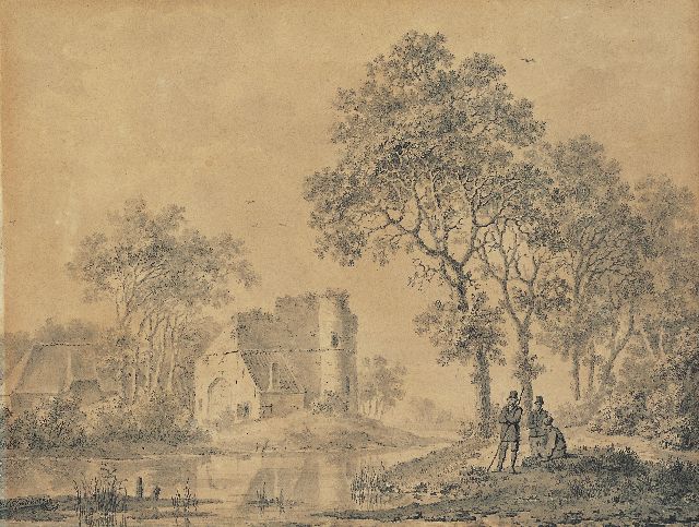 Lodewijk Johannes Kleijn | Boerenvolk bij een dorpssloot, olieverf op doek, 49,5 x 64,4 cm, gesigneerd l.o.