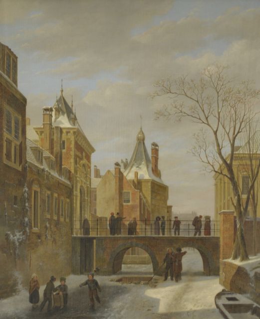 Adrianus Eversen | Winterlandschap, olieverf op paneel, 21,8 x 25,0 cm