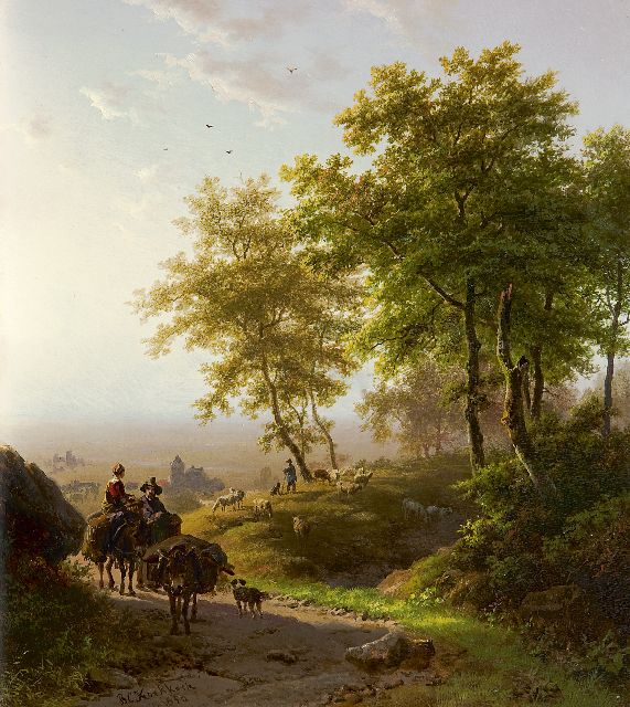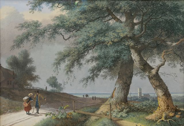 J.G. Hans | Reizigers in zomerslandschap, olieverf op paneel, 13,0 x 17,0 cm, gesigneerd l.o.