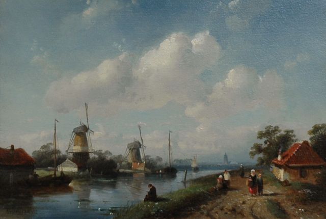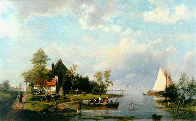 Lodewijk Johannes Kleijn | Zomers riviergezicht met zeilschepen (alleen tezamen met winter), olieverf op paneel, 33,5 x 52,2 cm, gesigneerd r.o.