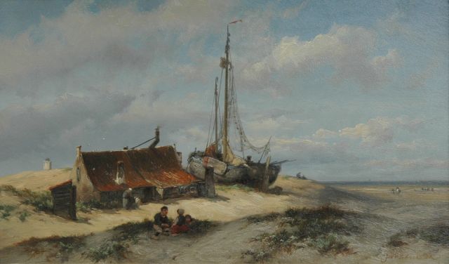 Lambertus Johannes Hansen | Boerendorp met drinkers bij een herberg, olieverf op doek, 41,1 x 56,1 cm, gesigneerd l.o.