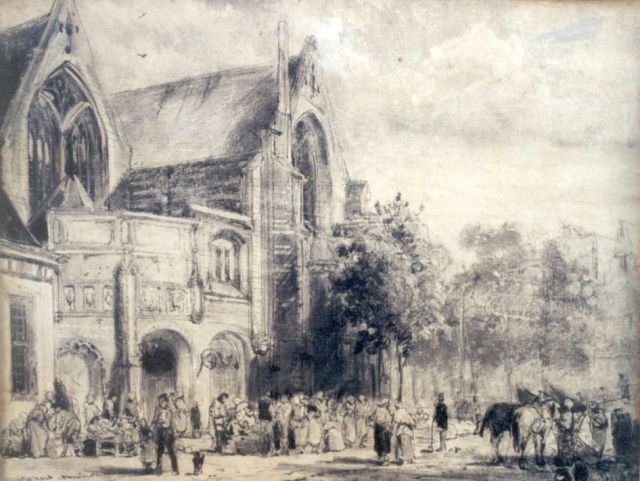 Elias Pieter van Bommel | Gezicht op het Groothoofd met de Groothoofdspoort, Dordrecht, olieverf op doek, 65,4 x 53,2 cm