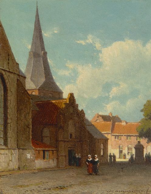 Adrianus Eversen | Achter de Westerkerk in Enkhuizen, olieverf op doek, 56,4 x 46,6 cm, gesigneerd r.o.