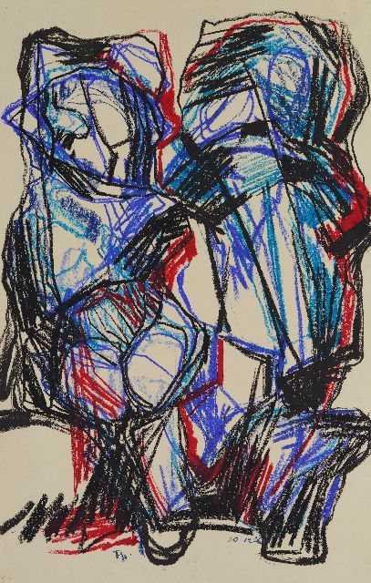 Frieda Hunziker | Voorstudie Twee figuren, waskrijt op papier, 78,5 x 49,9 cm, gesigneerd l.o. met initialen en gedateerd 10-12-'61