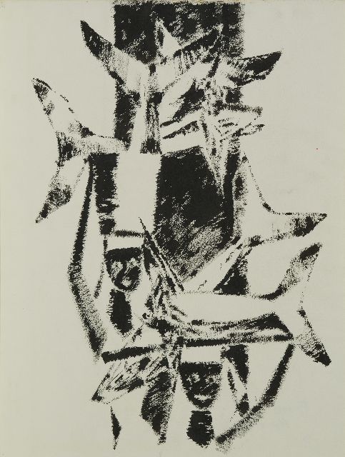 Frieda Hunziker | Voorstudie Compositie, inkt en krijt op papier, 78,9 x 57,5 cm, gesigneerd l.o. en gedateerd 4/48