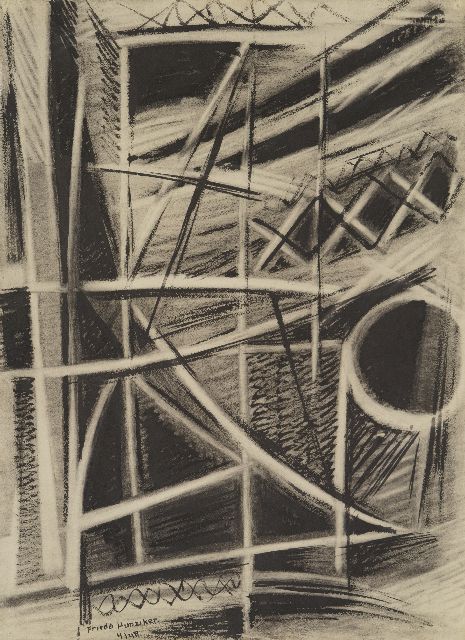 Frieda Hunziker | Compositie, waskrijt op papier, 50,0 x 78,5 cm, gesigneerd m.o.