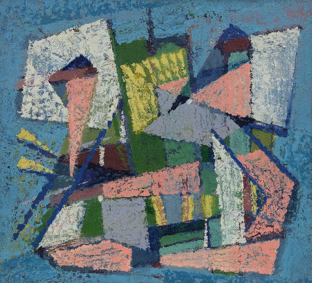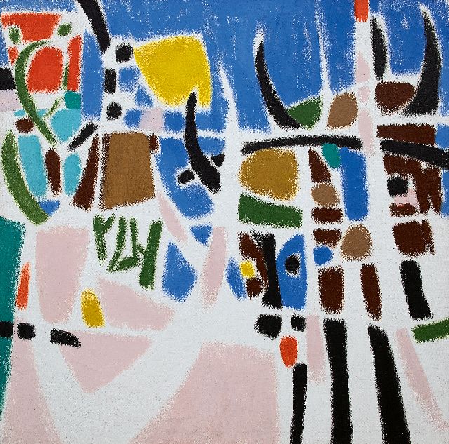 Frieda Hunziker | Compositie, olieverf op doek, 39,4 x 59,3 cm, te dateren 1950