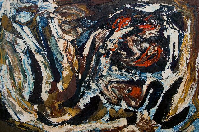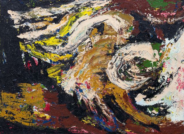 Frieda Hunziker | Draaikolk, olieverf op doek, 125,2 x 100,4 cm, gesigneerd op spieraam (tweemaal) en te dateren 1963