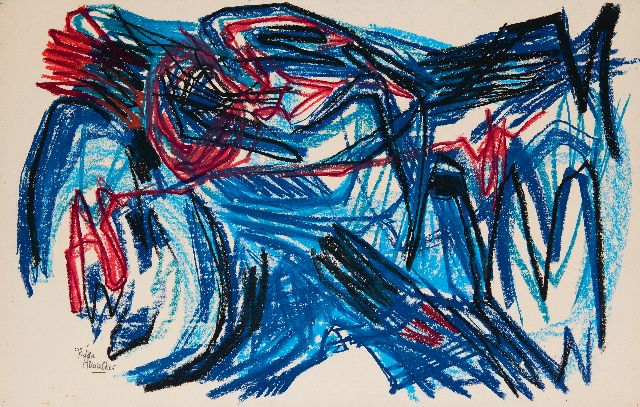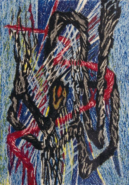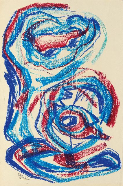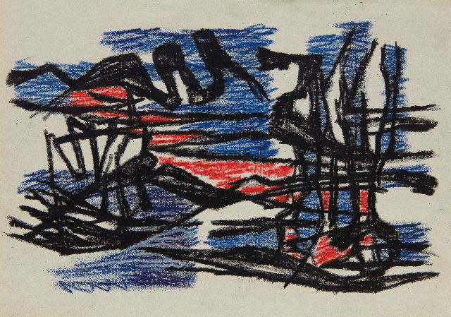 Frieda Hunziker | Compositie, waskrijt op papier, 50,1 x 35,3 cm, gesigneerd verso