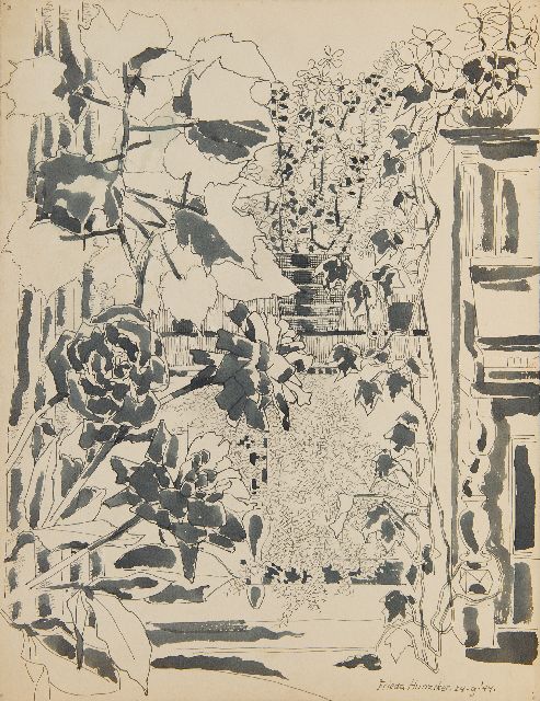 Frieda Hunziker | Balcon en piano, olieverf op doek, 75,6 x 60,4 cm, gesigneerd r.o. en te dateren ca. 1947