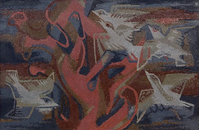 Frieda Hunziker | Duiven, olieverf op doek, 60,0 x 90,0 cm, gesigneerd r.o. en gedateerd 46