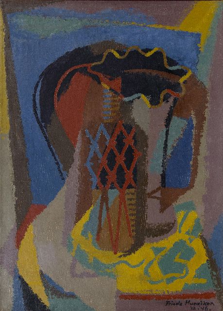 Frieda Hunziker | Stilleven met vaas en fles, olieverf op doek, 69,8 x 49,7 cm, gesigneerd r.o. en gedateerd '12-'46.