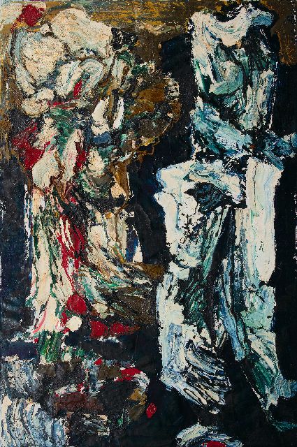 Frieda Hunziker | 2 figuren, olieverf op doek, 150,4 x 100,3 cm, gesigneerd verso en te dateren 1962