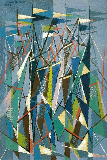 Frieda Hunziker | Masten en zeilen, olieverf op doek, 90,3 x 60,5 cm, gesigneerd l.b. en gedateerd 9/47