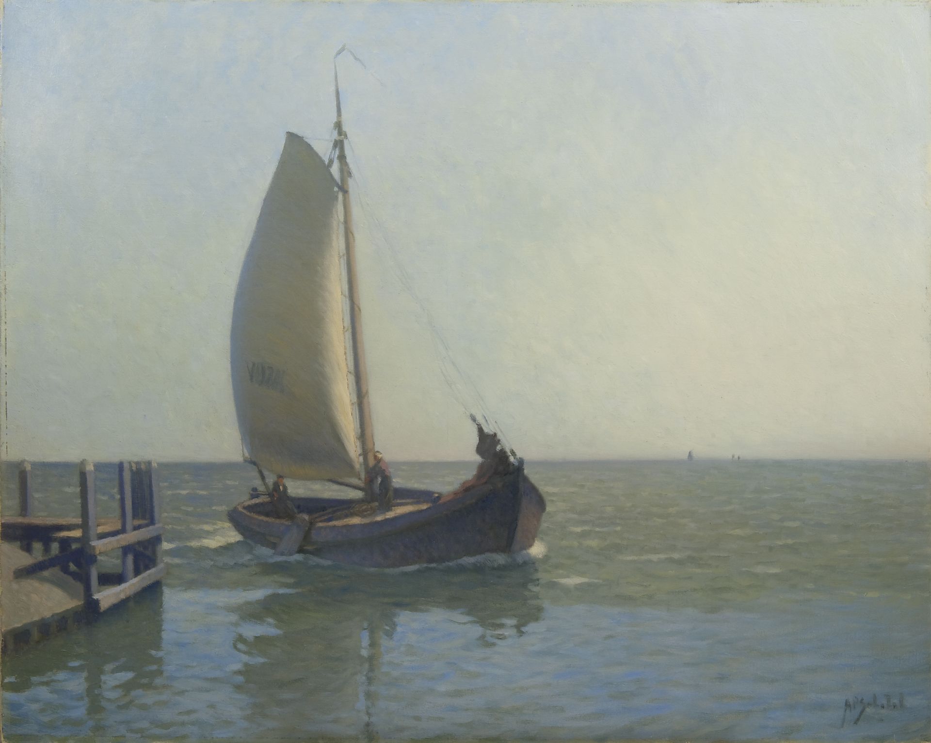 De Dordtse schilder Anthonie Pieter Schotel schilderde stadsgezichten en stillevens, maar zijn grote liefde was het schilderen van water en schepen. Het was de Zuiderzee, met zijn uitzeilende botters en de intieme rust van de vallende avond op het water die hem het meeste trok. Na de aanleg van de Afsluitdijk werkte hij ook in Zeeland en Rotterdam. Zijn watergezichten zijn bij voorkeur opgezet in tere, grijze tonen met door gefilterd licht vervaagde vormen. In 1923, 1924 en 1936 reisde hij naar Frankrijk, met name naar Normandië, Bretagne en de Rivièra maar ook naar Parijs, waar kleurige stadsgezichten tot stand kwamen.