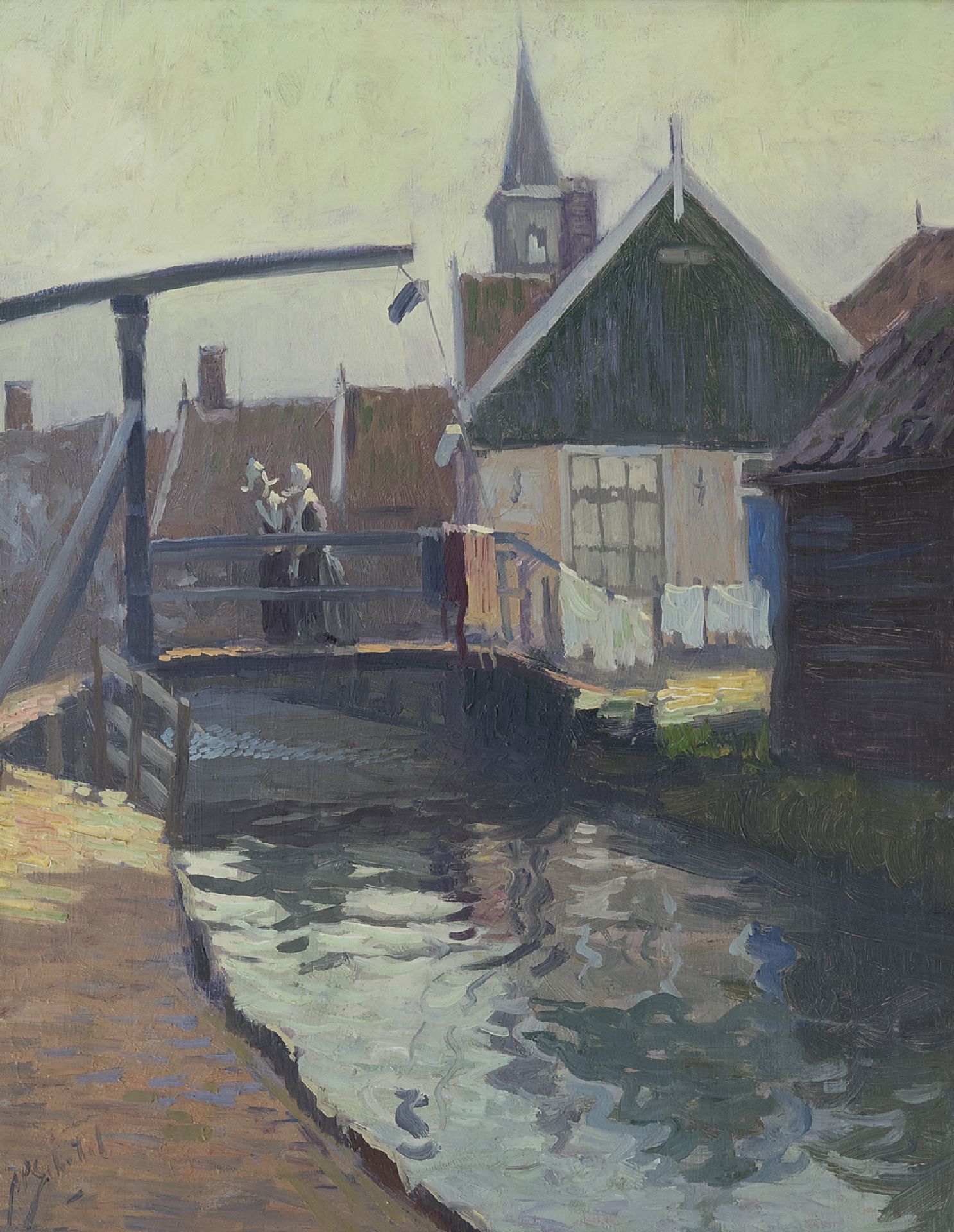 A.P. Schotel kunstwerk • schilderij • voorheen te koop Gezicht op het gele bruggetje, Volendam