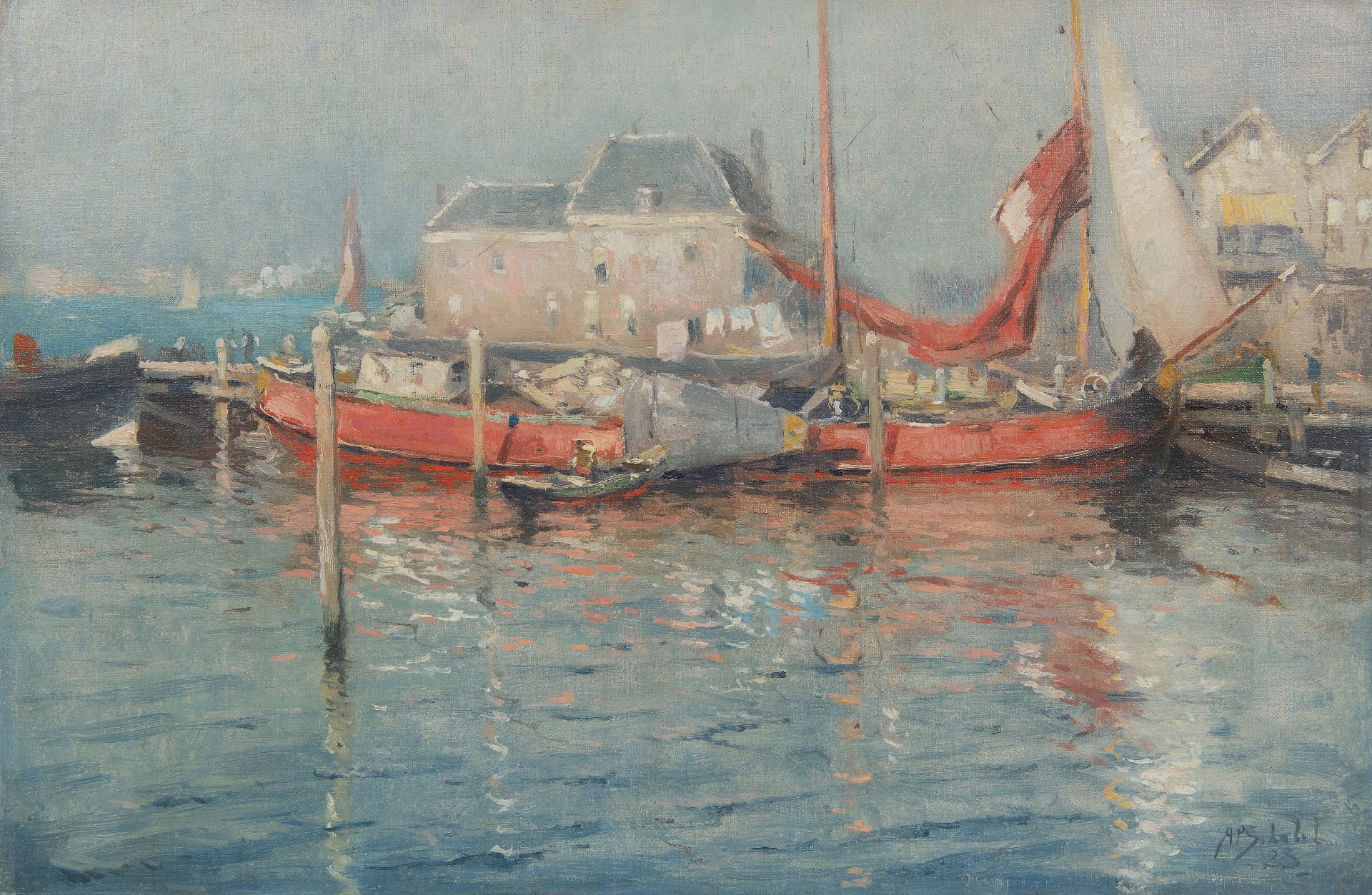 De Dordtse schilder Anthonie Pieter Schotel schilderde stadsgezichten en stillevens, maar zijn grote liefde was het schilderen van water en schepen. Het was de Zuiderzee, met zijn uitzeilende botters en de intieme rust van de vallende avond op het water die hem het meeste trok. Na de aanleg van de Afsluitdijk werkte hij ook in Zeeland en Rotterdam. Zijn watergezichten zijn bij voorkeur opgezet in tere, grijze tonen met door gefilterd licht vervaagde vormen. In 1923, 1924 en 1936 reisde hij naar Frankrijk, met name naar Normandië, Bretagne en de Rivièra maar ook naar Parijs, waar kleurige stadsgezichten tot stand kwamen.
