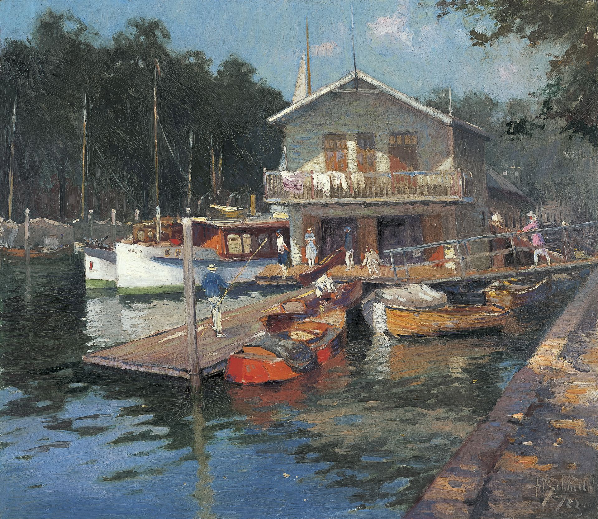 A.P. Schotel kunstwerk • schilderij • voorheen te koop Jachthaven met clubhuis van de KDRZV, Dordrecht