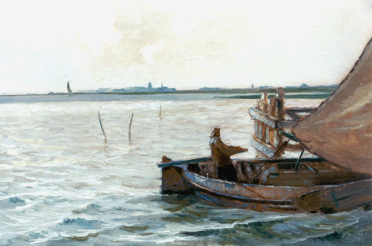 A.P. Schotel kunstwerk • schilderij • voorheen te koop Platbodem op het IJsselmeer