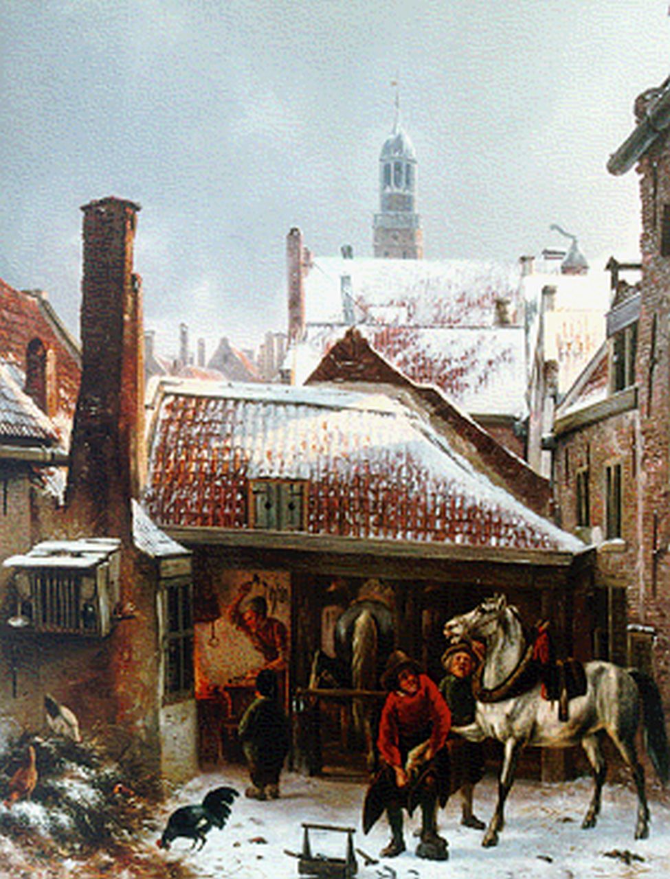 Abraham Hendrik Winter kunstwerk • schilderij • voorheen te koop Hoefsmid aan het werk in Utrecht