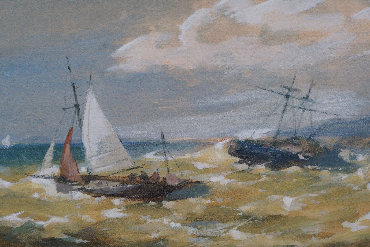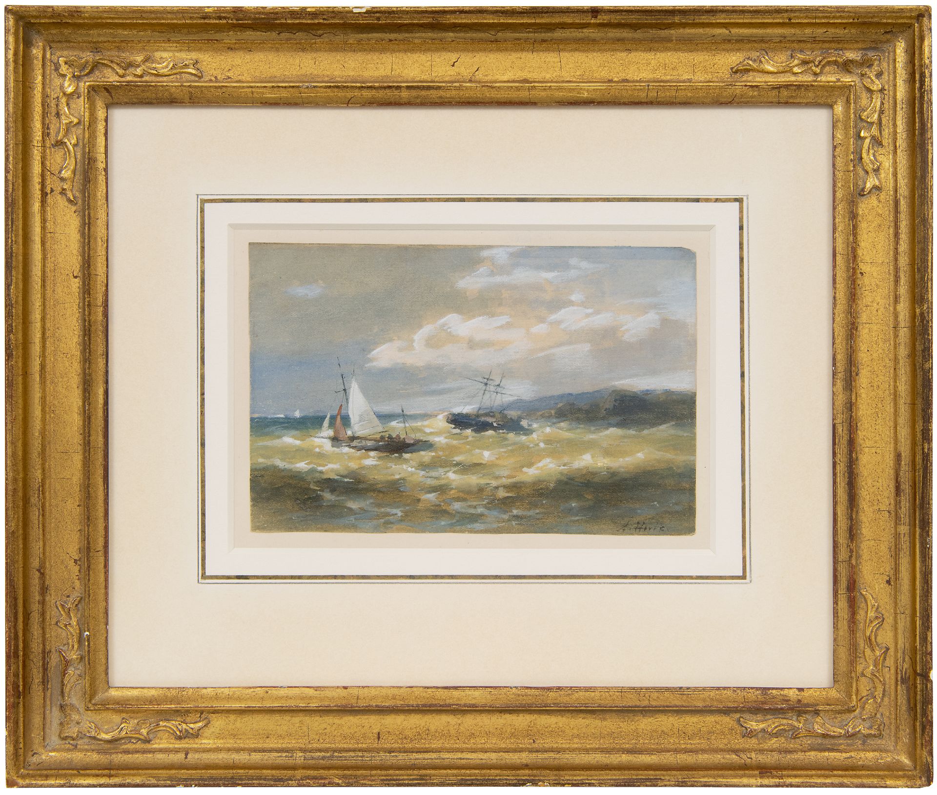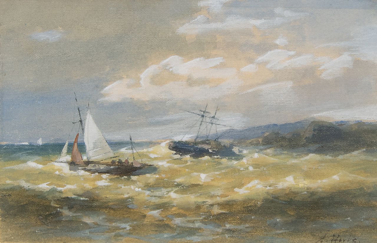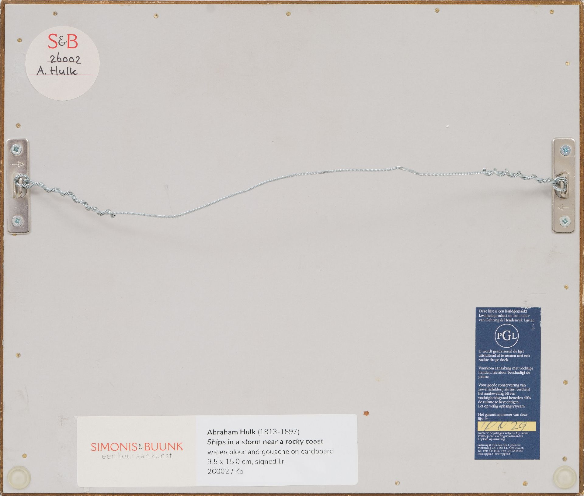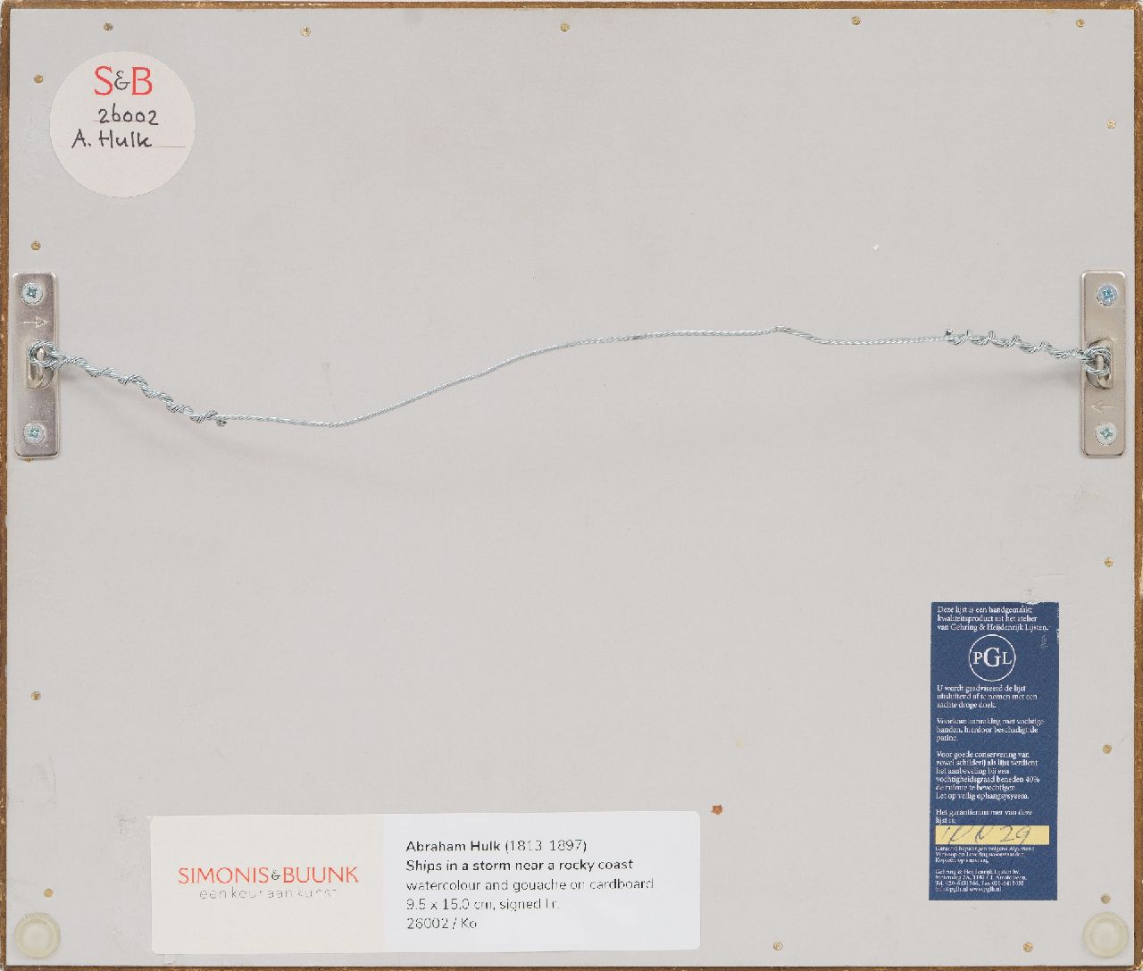 Abraham Hulk kunstwerk • aquarel • tekening • te koop Schepen in een storm bij een rotskust