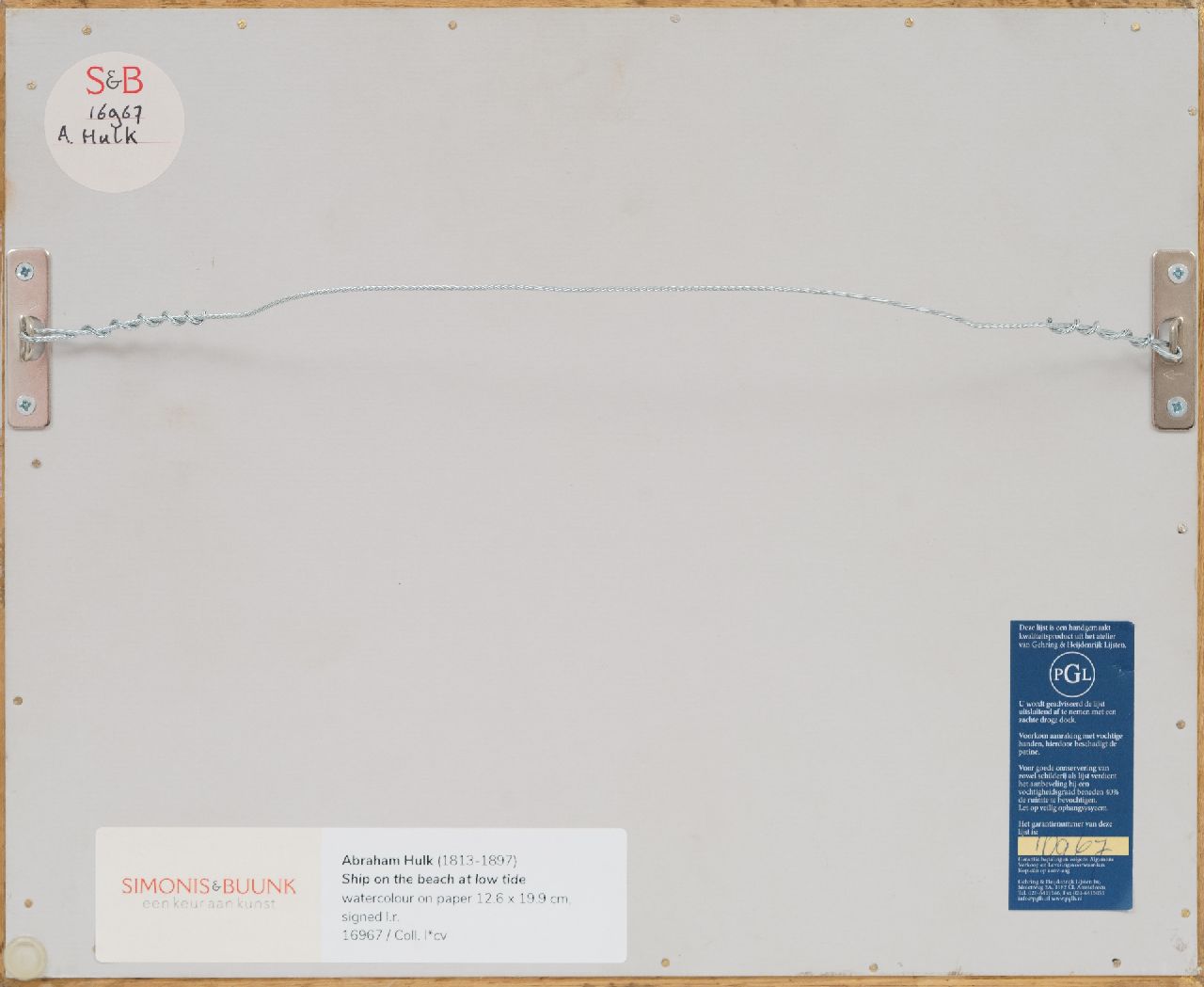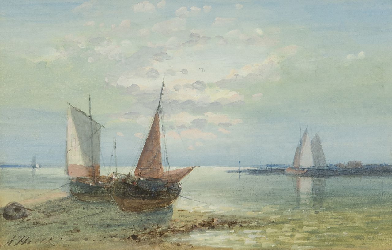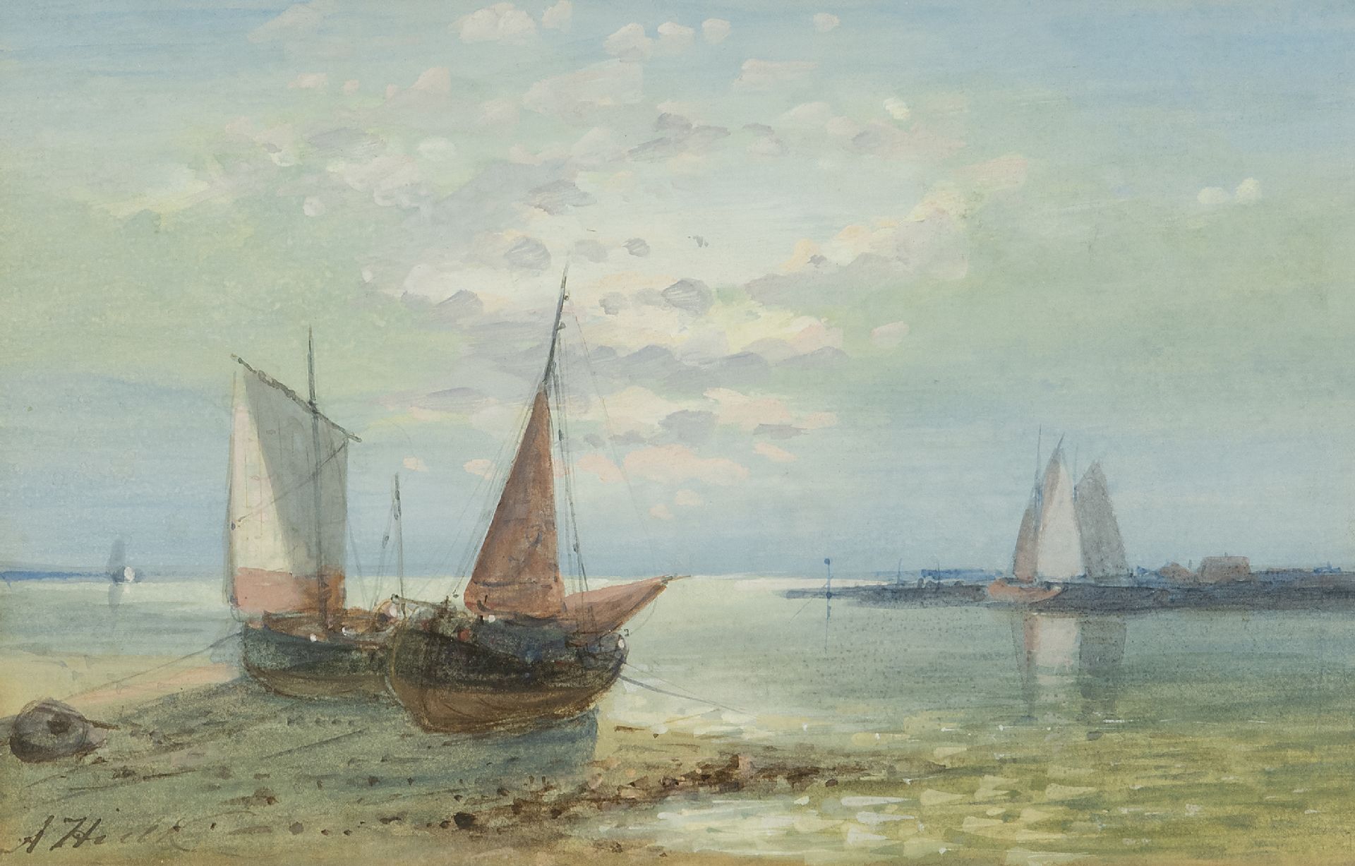 Abraham Hulk kunstwerk • aquarel • tekening • te koop Schepen op het strand bij eb