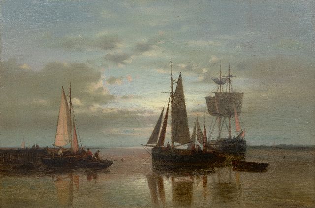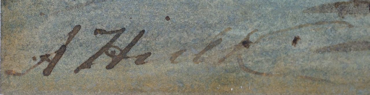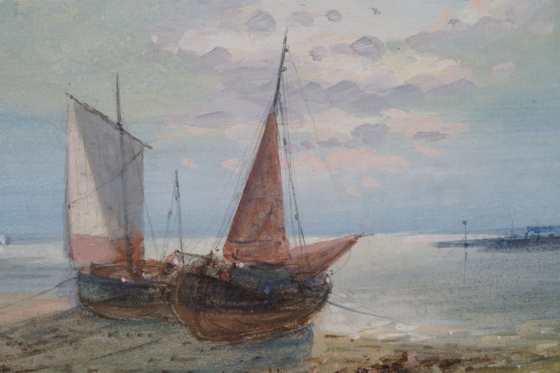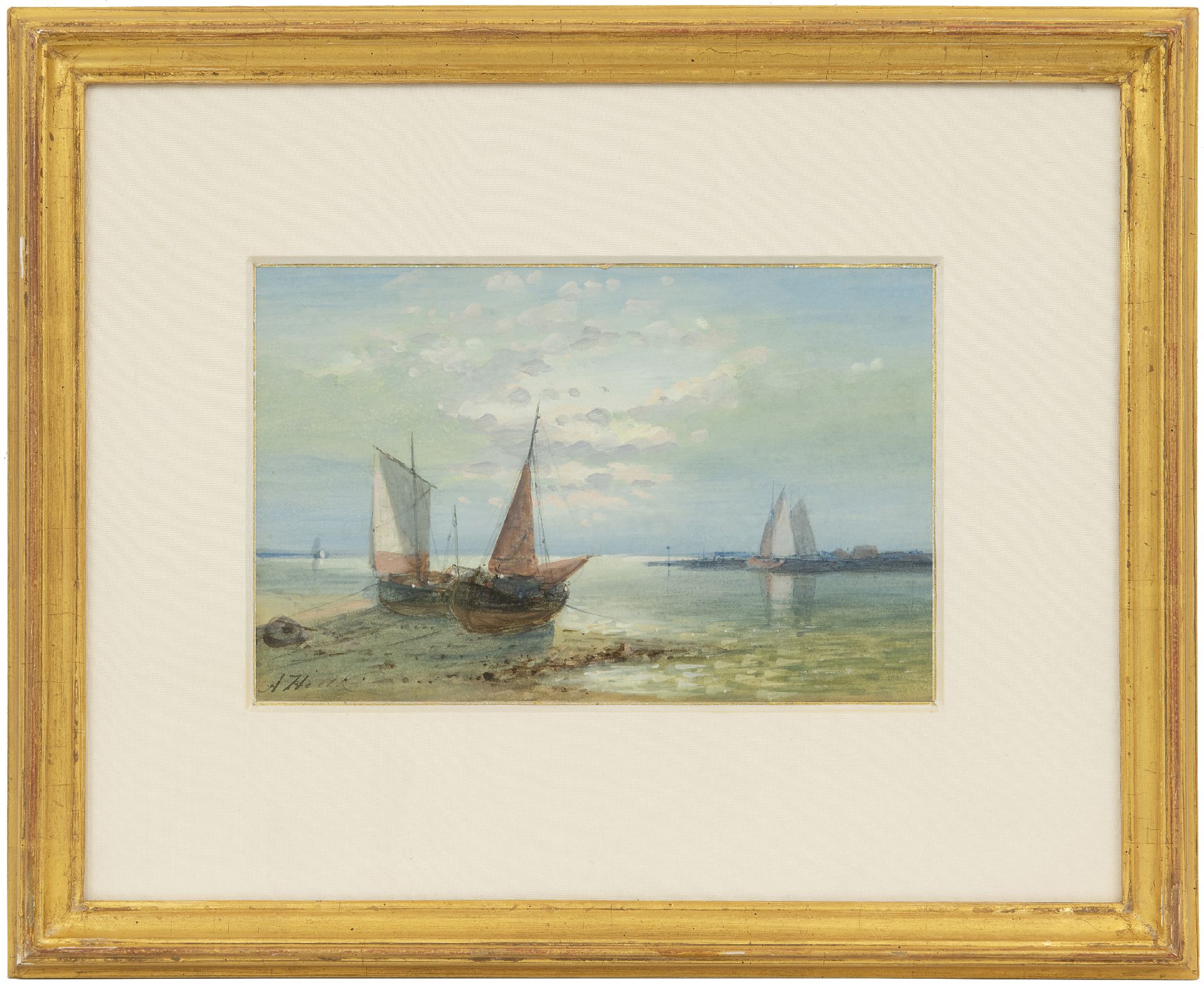 Abraham Hulk kunstwerk • aquarel • tekening • te koop Schepen op het strand bij eb