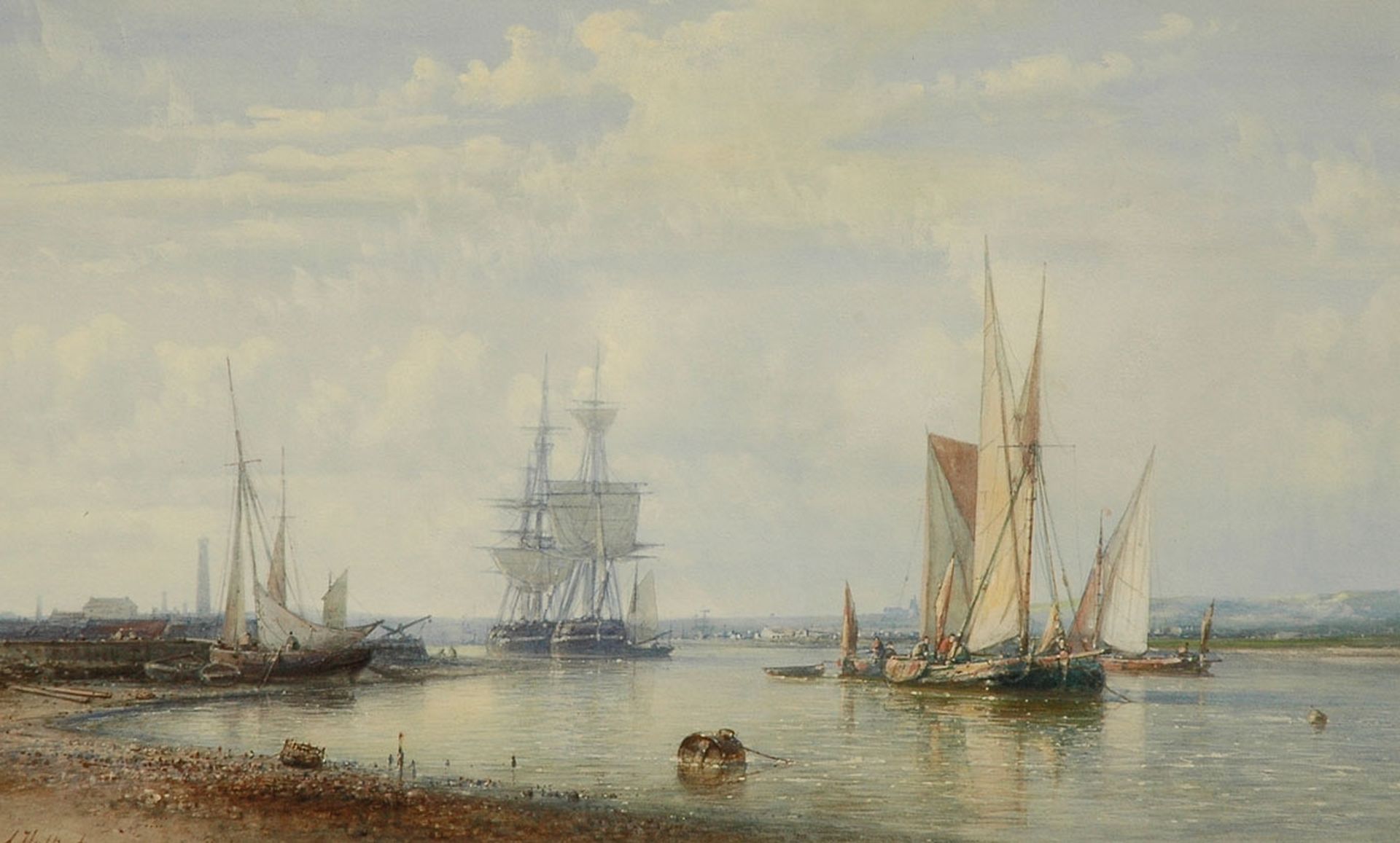 Abraham Hulk kunstwerk • aquarel • tekening • voorheen te koop Zeilschepen in kalme riviermond