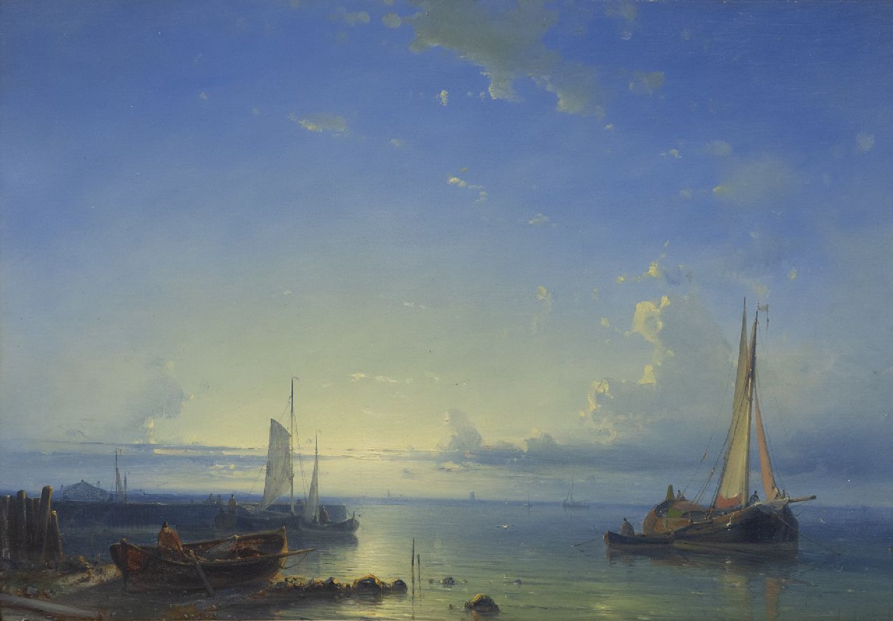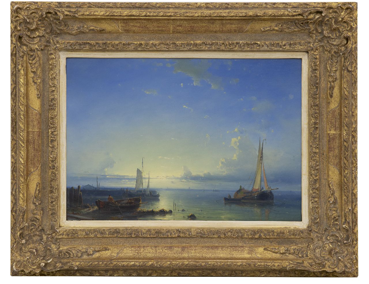 Abraham Hulk | Laverende platbodems, olieverf op paneel, 21,5 x 32,3 cm, gesigneerd l.o. en gedateerd 1849